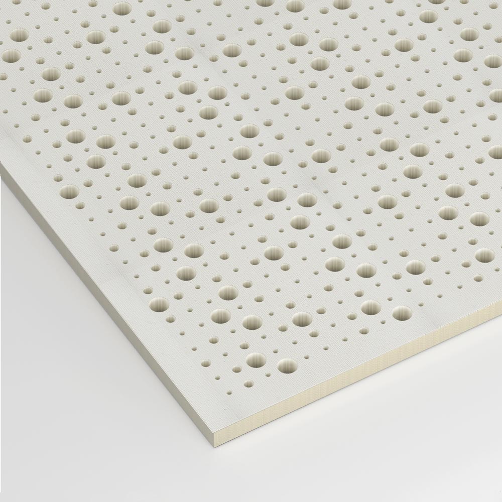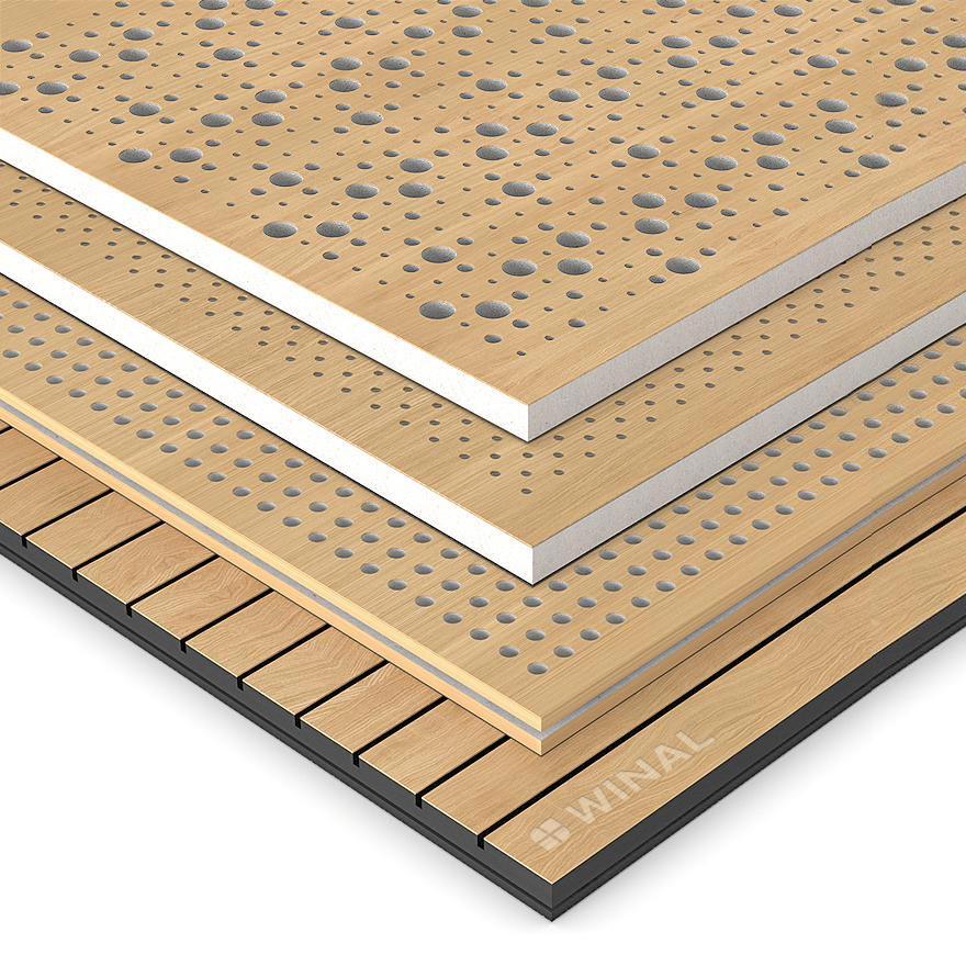 Стеновые и потолочные акустические перфорированные звукопоглощающие панели на основе окрашенного гипсокартона и СМЛ (средней плотности волокнистых плит) представляют собой эффективное решение для улучшения акустики в помещениях, обеспечивая при этом эстетичное оформление. Большой выбор цветов и декоративных покрытий однотонных RAL и фактурных под дерево. Огнестойкие КМ-1 и негорючие КМ-0.